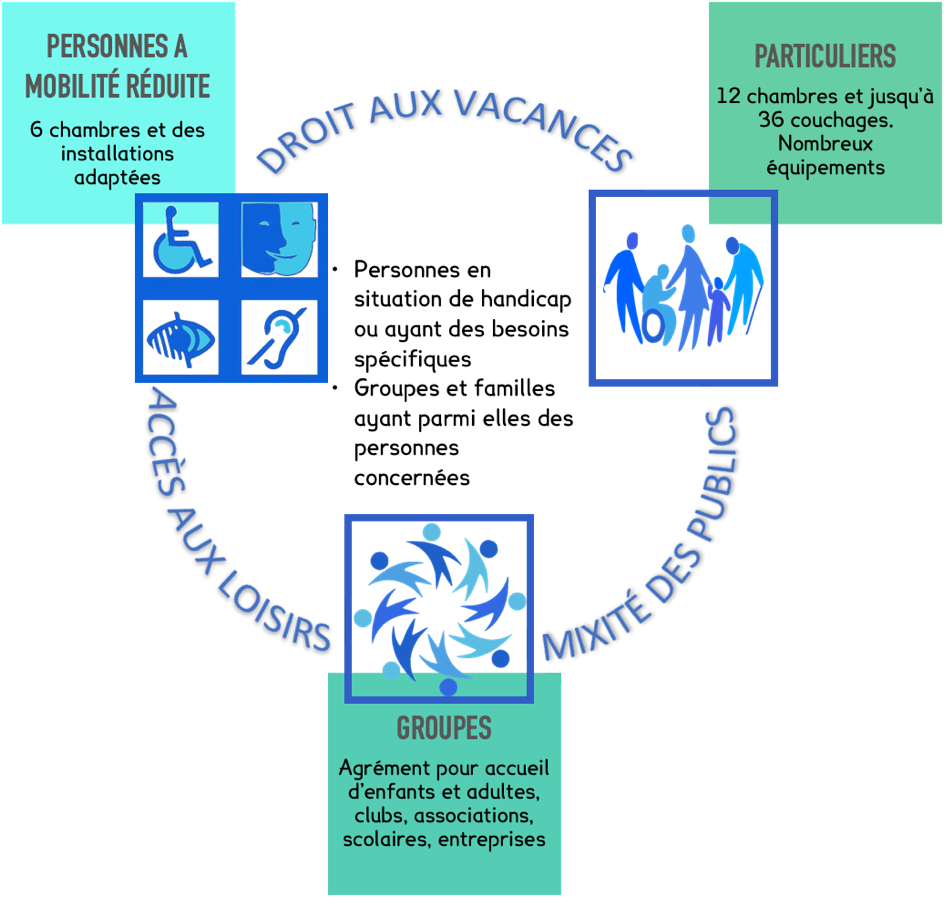 Le chalet a vocation à pouvoir accueillir toute personne, quels que soient ses besoins spécifiques, individuellement ou en groupe :